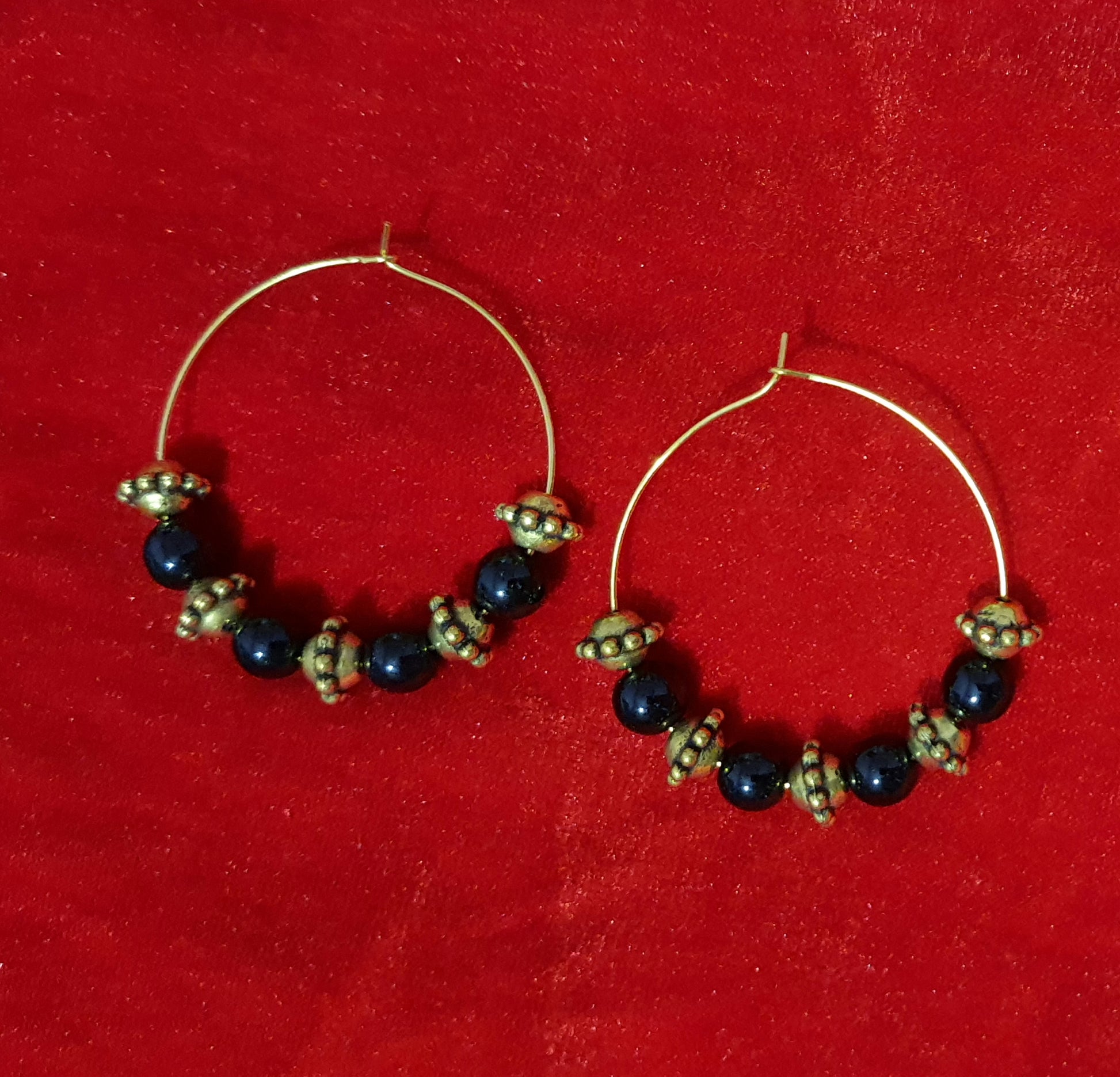 Black & Golden Bead Earring Hoop
