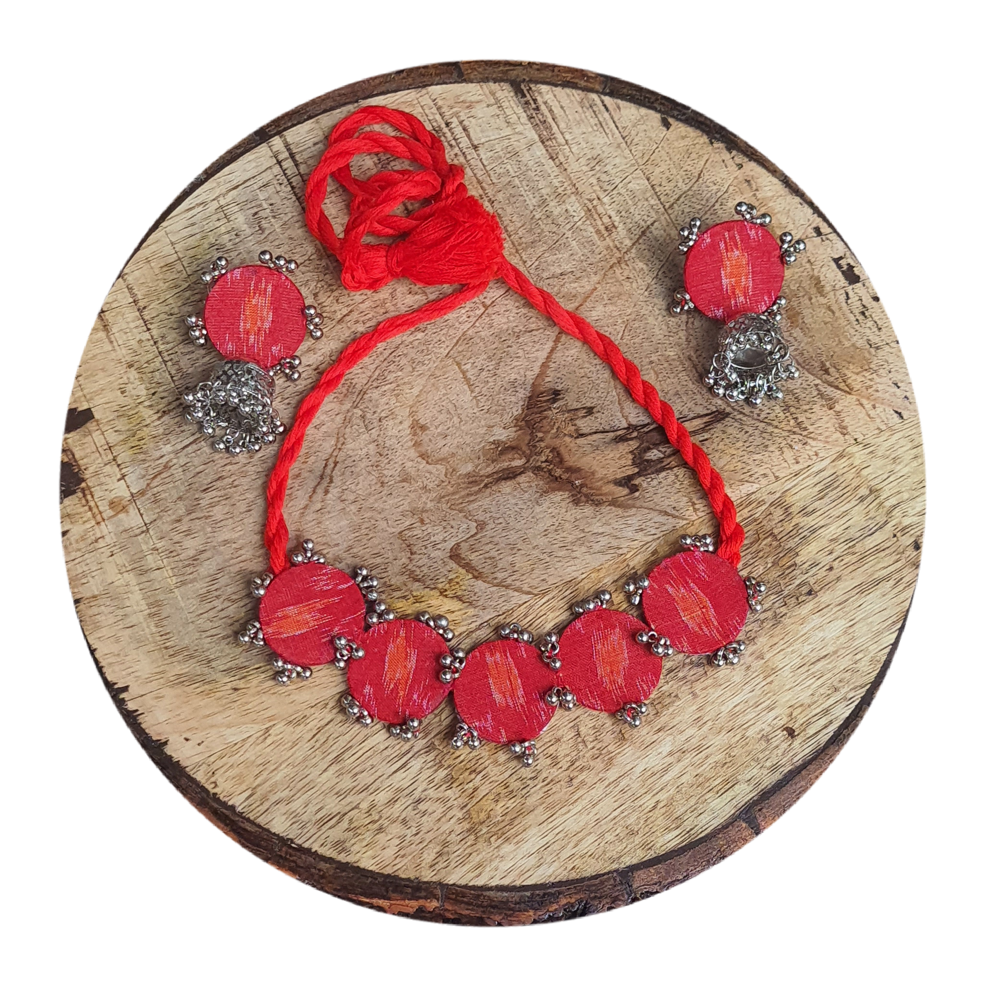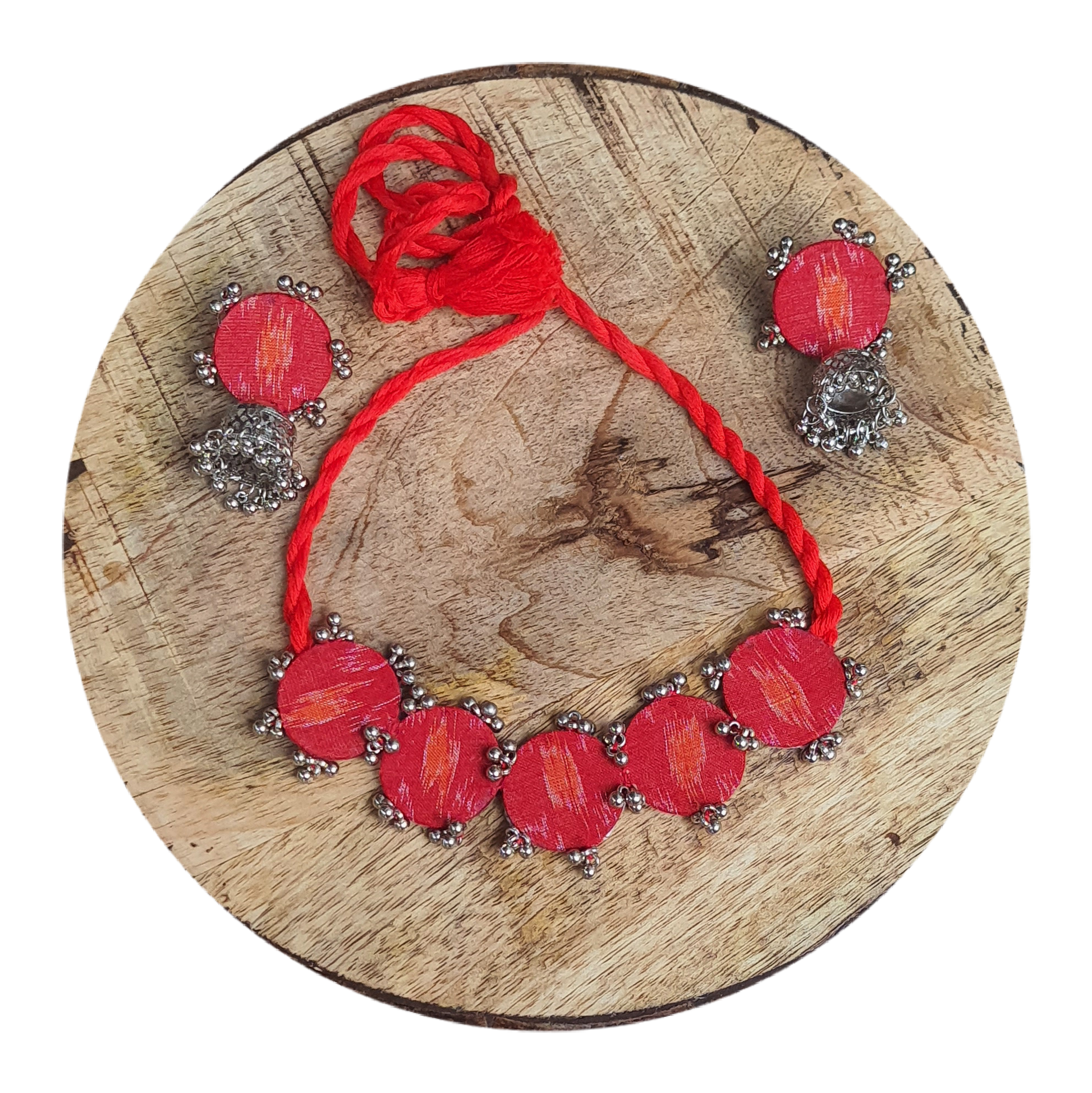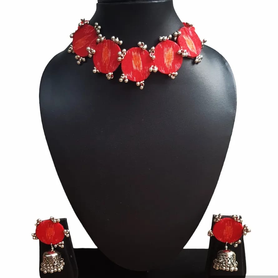 Red Sambalpuri Fabric Choker Set